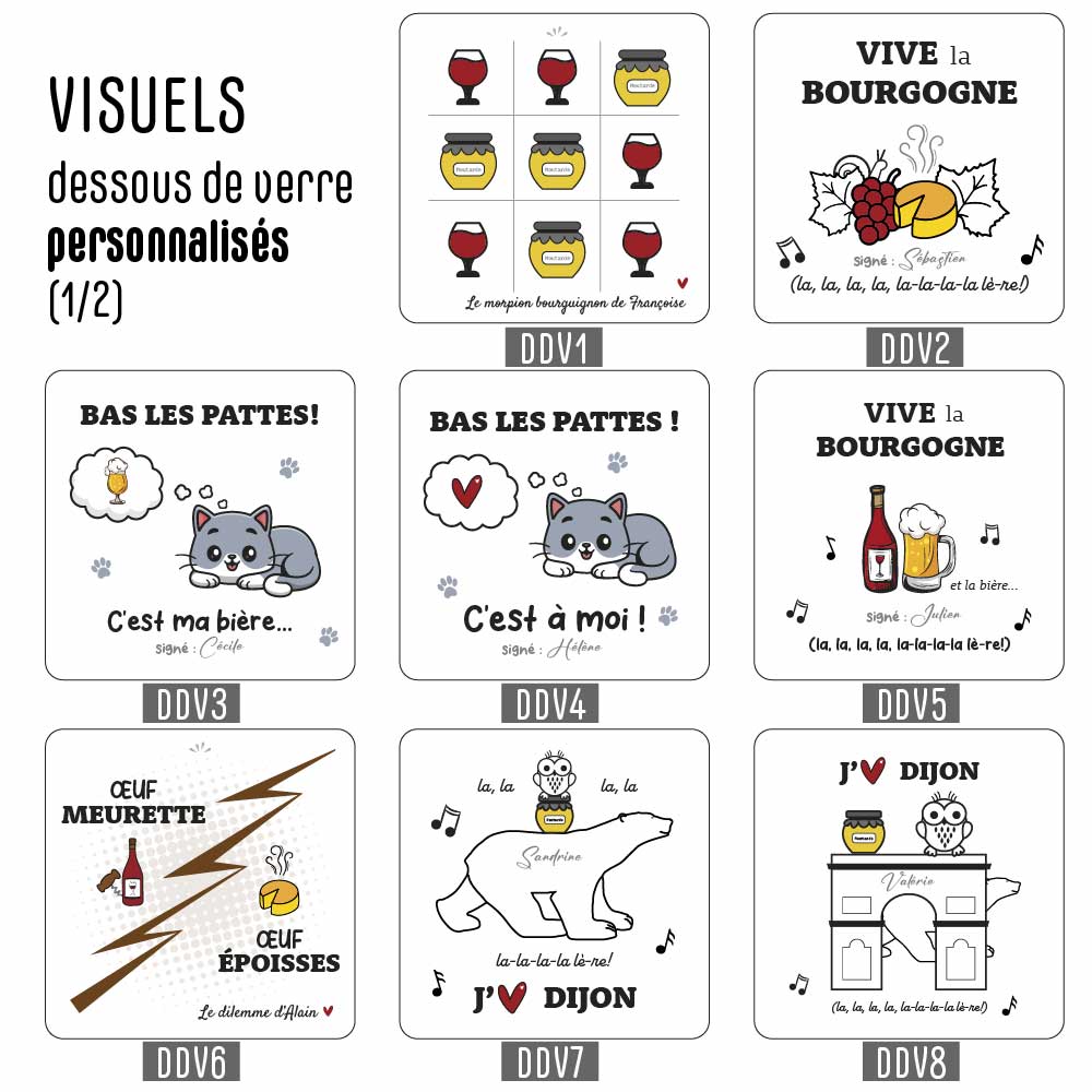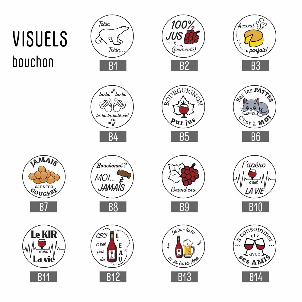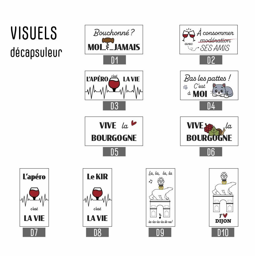 Les visuels pour votre bouchon, votre porte-clés décapsuleur et votre dessous de verre
