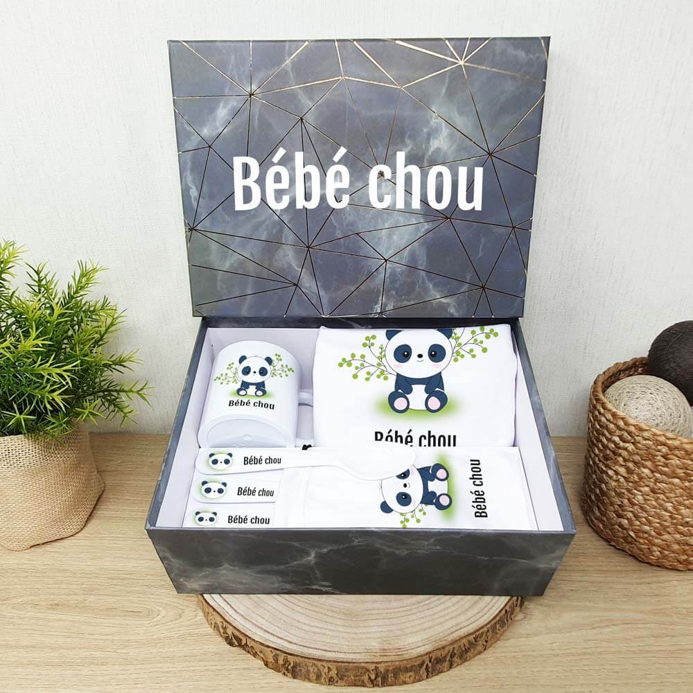 Coffret naissance personnalisé sur le THÈME PANDA pour un cadeau totalement unique et qui plaira à tous les coups !
