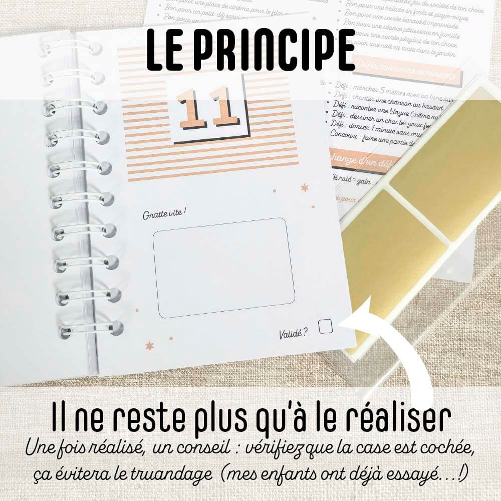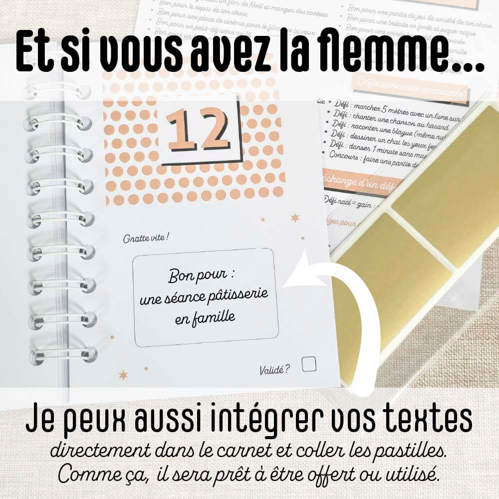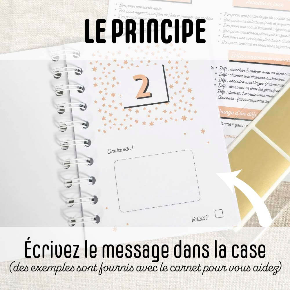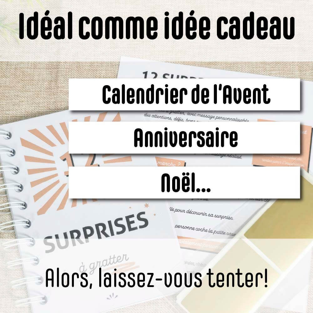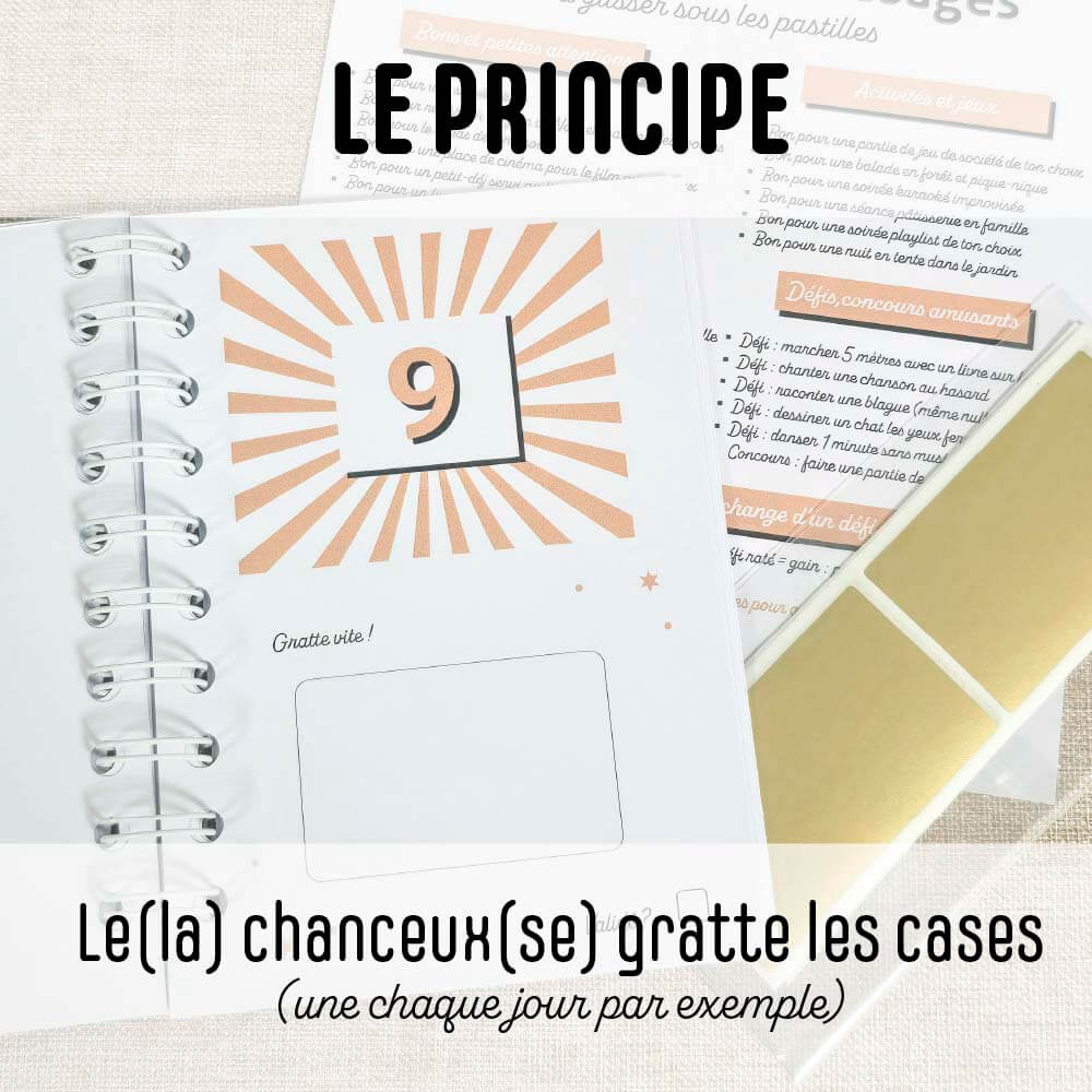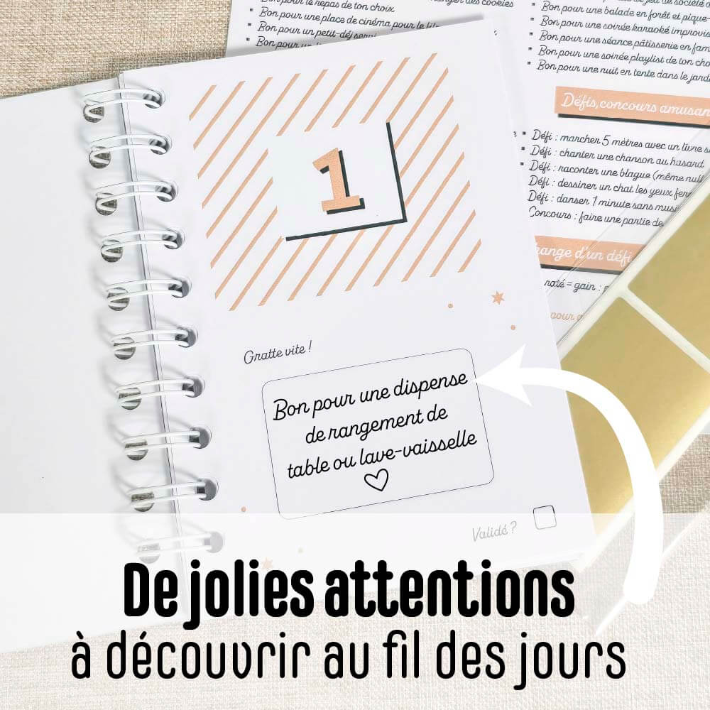 Une idée cadeau originale et pleine de bonne humeur : chaque jour (ou chaque semaine), grattez une case et découvrez un mot doux, un défi amusant ou une attention personnalisée.