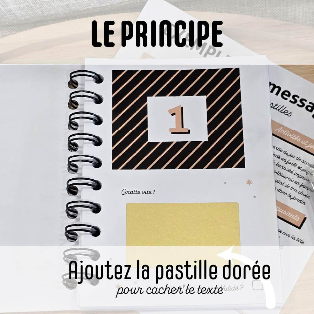 La personne gratte une case chaque jour par exemple et découvre le petit message.