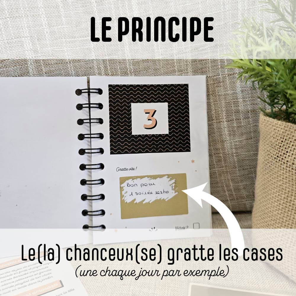 Une idée cadeau originale et pleine de bonne humeur : chaque jour, grattez une case et découvrez une petite attention, un défi rigolo ou un moment à partager.